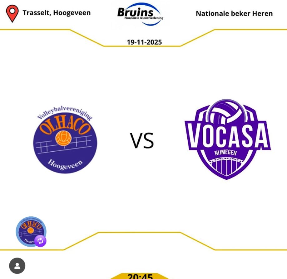 Hoogeveen – De heren van Olhaco spelen woensdag 19 november in de derde ronde van het nationale bekertoernooi tegen Superdivisionist